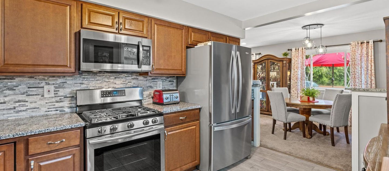 Welcome to this handsome split foyer in Manassas! Enjoy tree-lined streets as you head to your renovated, move-in ready home. Enter to the main level with a traditional, open-concept living room-dining room combination. The original hardwood floors are under the brand-new carpets. The kitchen has tons of natural light, counter space, and was completely renovated in 2016. It features hickory cabinets, granite counters, tile backsplash, gas cooking, and stainless-steel appliances. The kitchen walks out to the spacious deck which leads to the rear fenced yard. It is ready for your dog and dog-guest friends. There is plenty of space to grill and set up lounge and dining furniture for entertaining family and friends. Step down into the expansive, fenced-in yard that is serene and perfect for playing yard games or a fire pit. There is shed for all your landscaping storage needs. On the main level there are two bedrooms. They are both spacious. The primary bedroom features a large walk-in closet. The full bath was completely renovated in 2022 and features a stylish green and white color concept that will grab you. In the lower level, there is a large family room featuring a wood-burning fireplace. This space is massive and ready for party planning! It also walks out to the backyard via a glass sliding door. There is a third bedroom and an additional renovated bathroom. This space is perfect for your guests or an in-law suite. Parking is convenient under your carport or in the driveway and additionally, there is plenty of street parking. This house is located near Historic Downtown Manassas which throws a number of parades and festivals throughout the year. There is a pavilion that turns into an ice-skating rink during the colder months. The Farmers Market is held on Thursdays and Saturdays for local goods and crafts. “First Fridays” in Manassas closes the streets to cars so that pedestrians can shop and sip as they stroll through the downtown area. Restaurants and shops stay open later than usual. The Old Town VRE (Virginia Railway Express) station with parking is 1.5 miles from the house and the Manassas Park VRE station with parking is 4.1 miles away.